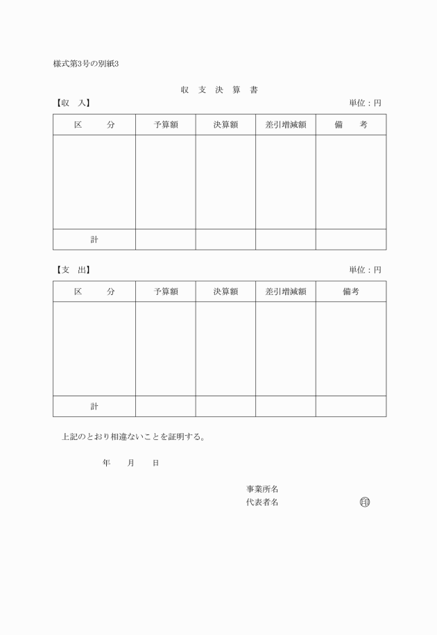 (1) 補助金精算書