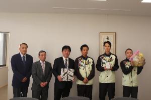 このたび、合宿期間中のご多忙の中、監督と選手の方々が表敬訪問にお越しくださいました。本市の自然豊かな環境での合宿が、選手の皆様の更なる飛躍につながることを期待し、激励の言葉をお伝えしました。
