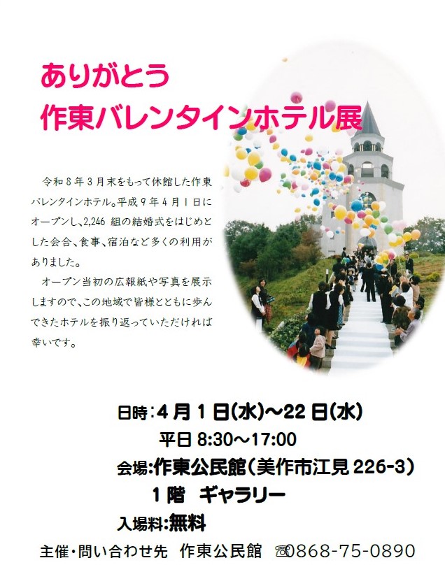 「ありがとう作東バレンタインホテル」展(4月1日~4月22日開催)